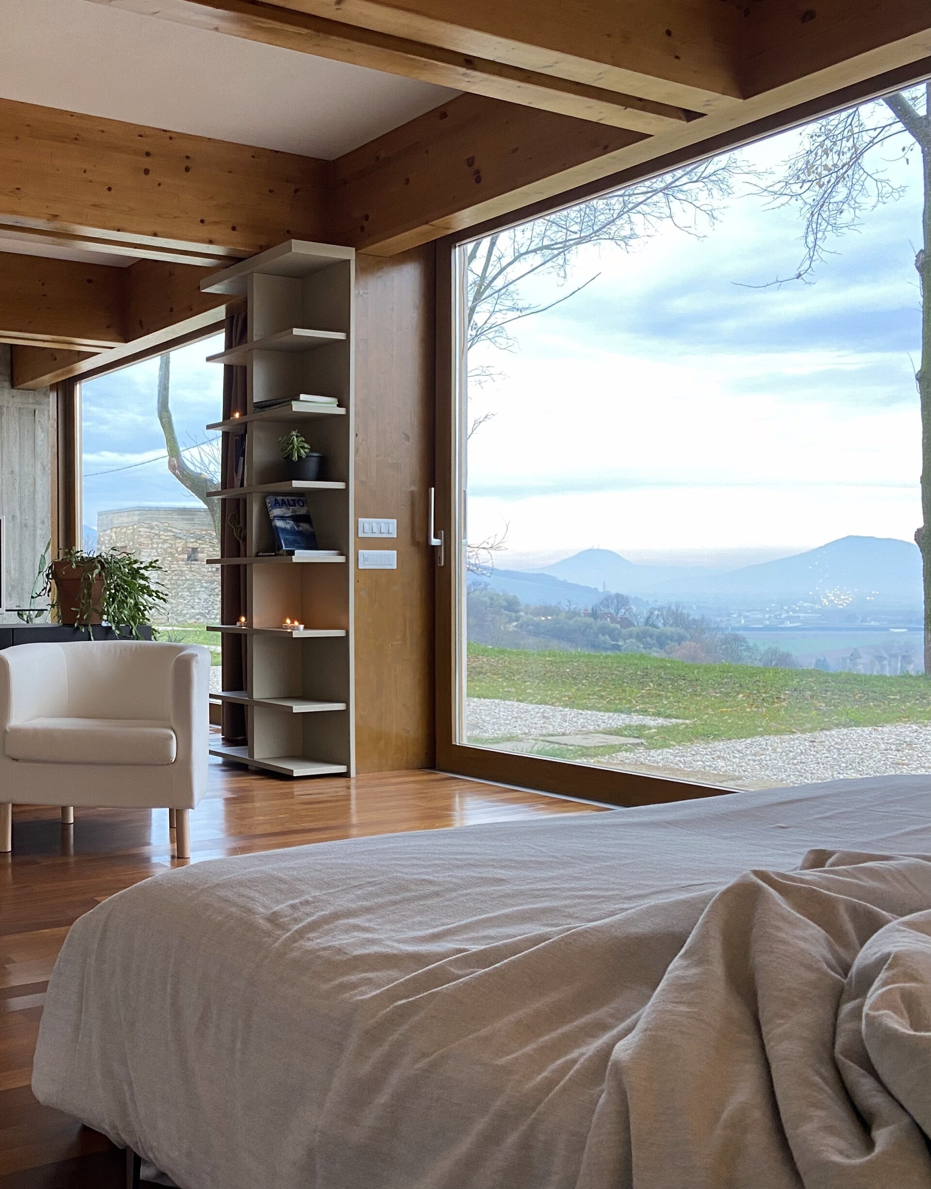 Il progetto è stato concepito con l’intento di provocare un risultato emozionale: godere della vista panoramica e dello spettacolo quotidiano della luce, provare il piacere di immergersi in una calda vasca da bagno o godersi una doccia rilassante mentre fuori nevica, addormentarsi scrutando le luci del paesaggio notturno e risvegliarsi al mattino fra gli aironi di vallata.